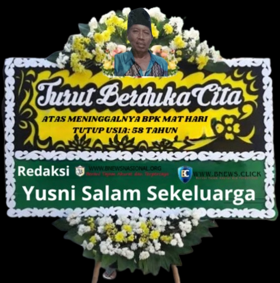 Keluarga besar media online Bnewsnasional dan Bnews.click turut merasakan duka yang mendalam atas kepergian Bapak MAT HARI. Kehilangan beliau merupakan kehilangan besar bagi kami.Baca Juga: Keluarga Besar Berduka, Bapak Hasim Telah Tiada