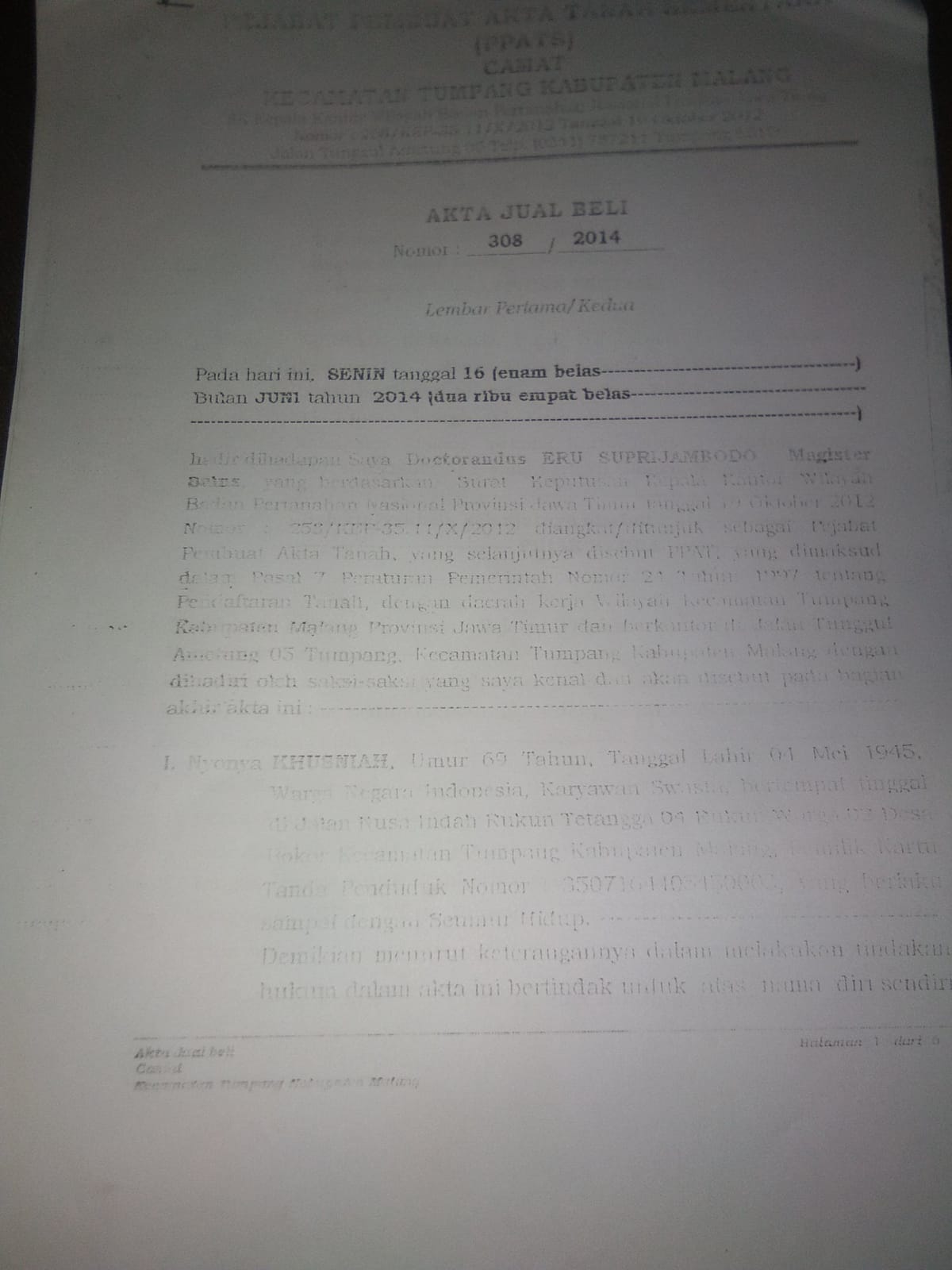Suatu saat tanpa diketahui dan membuat pemilik tanah menjadi kaget dengan munculnya akte jual beli tanah yang diterbitkan pada tahun 2021 yang berubah kepemilikan kepada ibu Eni Suhartini yang tidak lain adalah istri dari bapak Yogi pengusaha tempat wisata lembah tumpang.