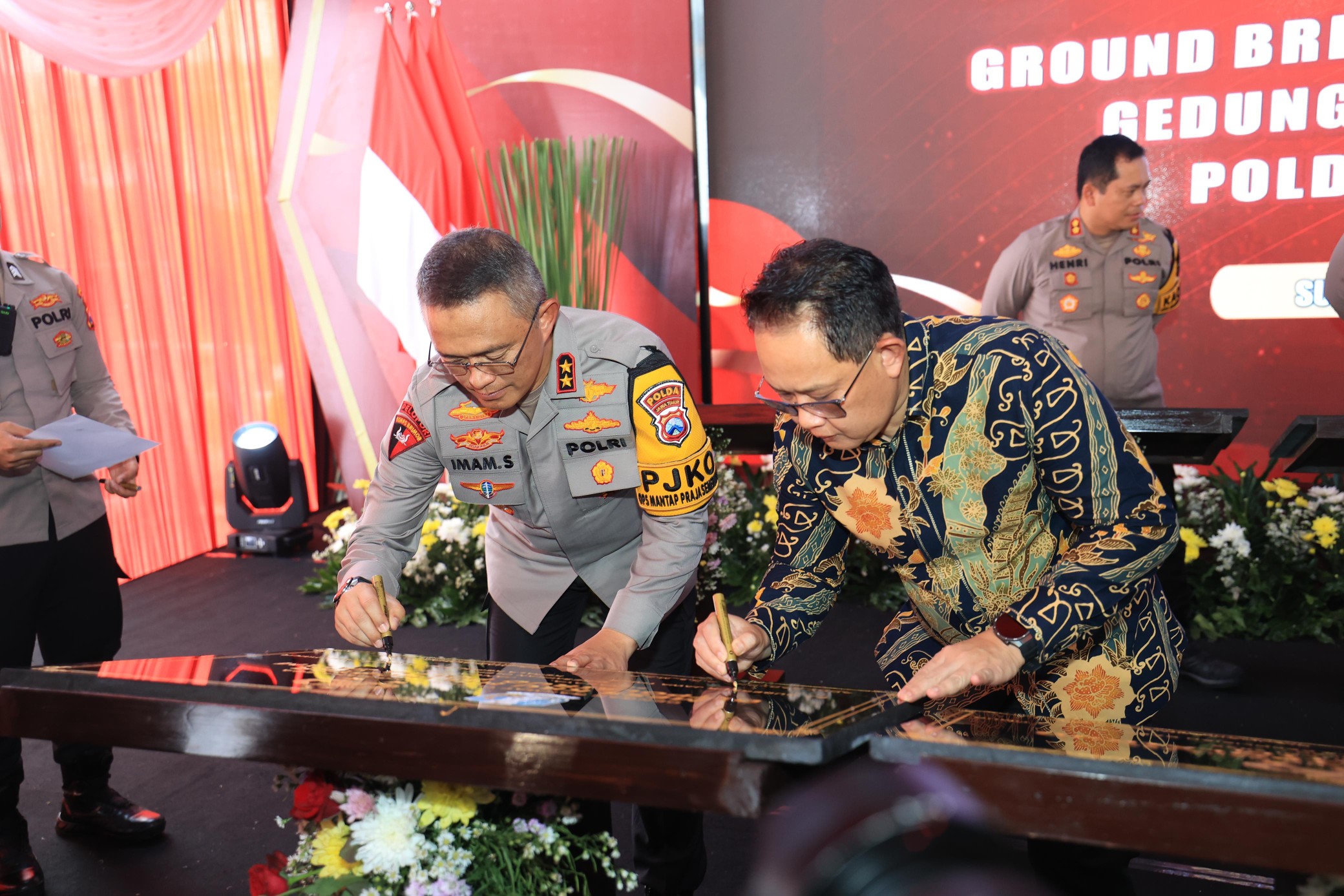 Selain meresmikan pembangunan Gedung Bidhumas Polda Jatim, Irjen Pol Drs Imam Sugianto,M.Si bersama Pj Gubernur Jawa Timur Adhy Karyono dan Direktur PT Wismilak juga melaksanakan ground breaking pembangunan gedung Ditreskrimsus, Kamis (16/1/2025) sore.