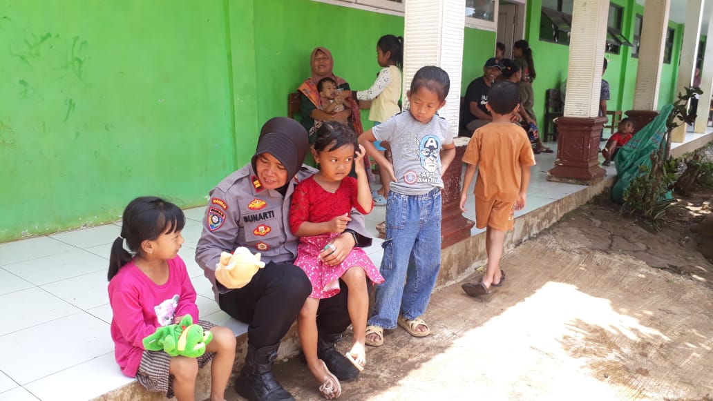Kegiatan trauma healing kali ini dipimpin Kasat Binmas Polres Pasuruan, Iptu Sunarti di lokasi pengungsian, SDN 2 Cowek.