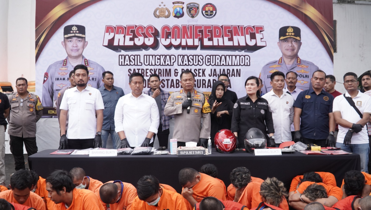 Kapolrestabes Surabaya, Kombes Pol Luthfie Sulistiawan mengatakan dari 42 tersangka itu adalah hasil ungkap 70 kasus curanmor.
