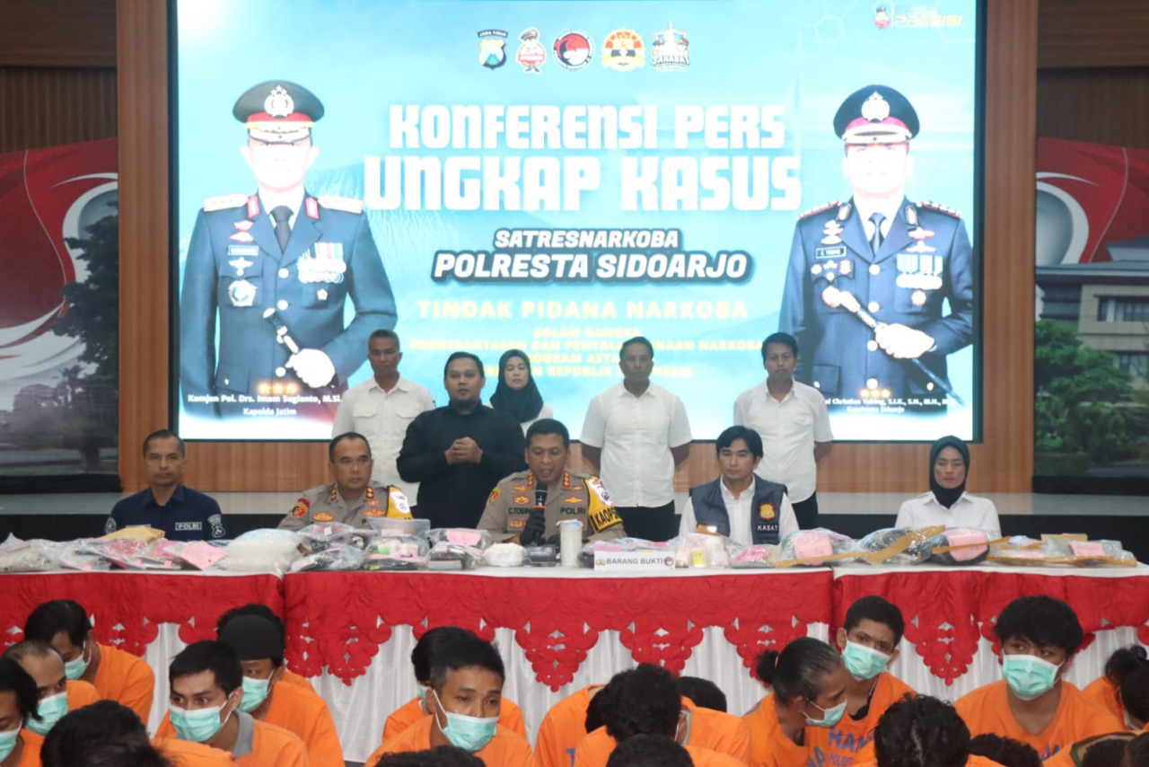 Kapolresta Sidoarjo Kombes. Pol. Christian Tobing menjelaskan dari 110 kasus tersebut terdapat 84 kasus diungkap oleh Satresnarkoba Polresta Sidoarjo, sementara 24 kasus diungkap oleh Polsek jajarannya.