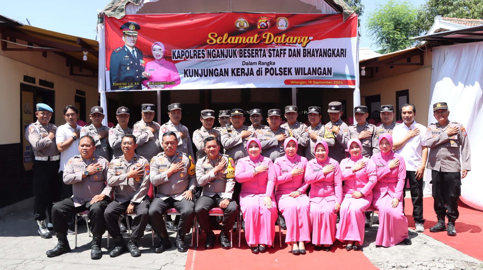 Nganjuk l Bnews.click - Kapolres Nganjuk, AKBP Siswantoro, S.I.K., M.H., didamping Wakapolres, Pejabat Utama (PJU) dan Pengurus Bhayangkari cabang Nganjuk melakukan kunjungan ke tiga Polsek sekaligus yakni Polsek Nganjuk Kota, Polsek Bagor dan Polsek Wilangan, Rabu (18/9/2024).